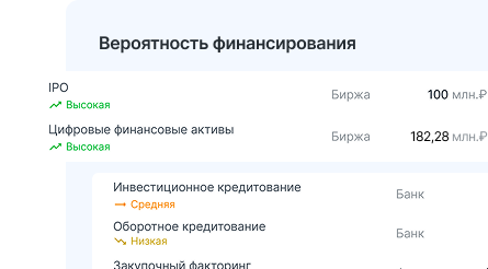 Сервис сам подберет и предложит вам на выбор список доступных источников финансирования и подходящие именно вам финансовые продукты, а также рассчитает лимит финансирования по каждому из них.